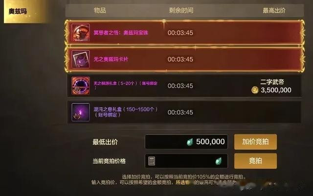 要知道团本的竞拍道具里,那可是有价格高昂的宝珠和卡片的!奥兹玛宝珠有价无市基本看不到,奥兹玛卡片阿甘左大区一百多万泰拉。利用竞拍bug无限刷这些的话?那这件事就大了!现在是查出来有这么个异常事件了,可是奥兹玛团本都上线多久了,知道bug的估计早就刷够本了。